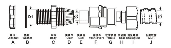 產品名稱:金屬軟管電纜接頭