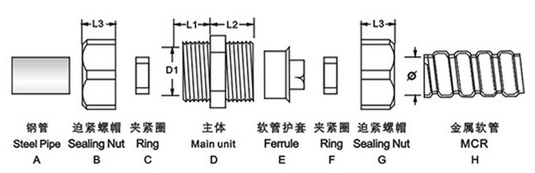 能將無螺紋的鋼管或無螺紋的設備出線口與軟管連接省卻套絲工序;表面鍍鋅或鍍鉻,結構緊密,強度高;鋼管與金屬軟管連接可靠,外表美觀