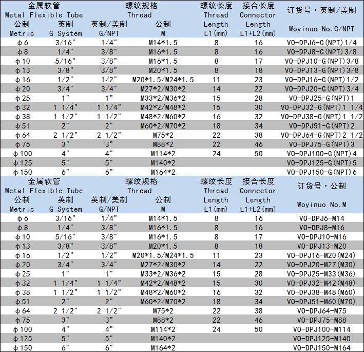 外形美觀,結構緊密,強度高;軟管護套設計與軟管相扣接緊之設計,配合迫緊頭裝配省時便利,抗拉力特強;可防水、防塵、抗鹽、耐酸堿及一般溶劑;除以下標準規格以外,可另按需求任意變動大小及螺紋標準。